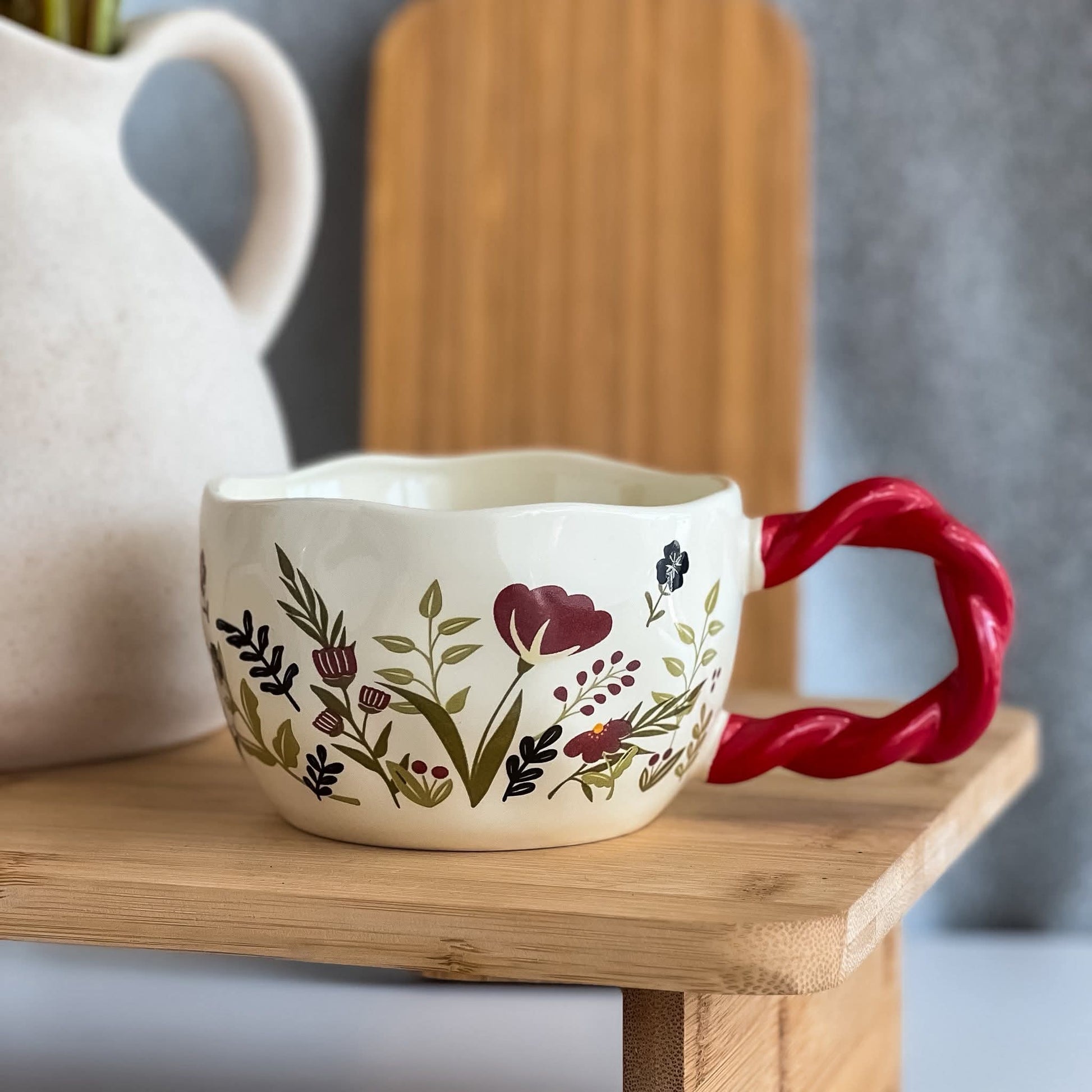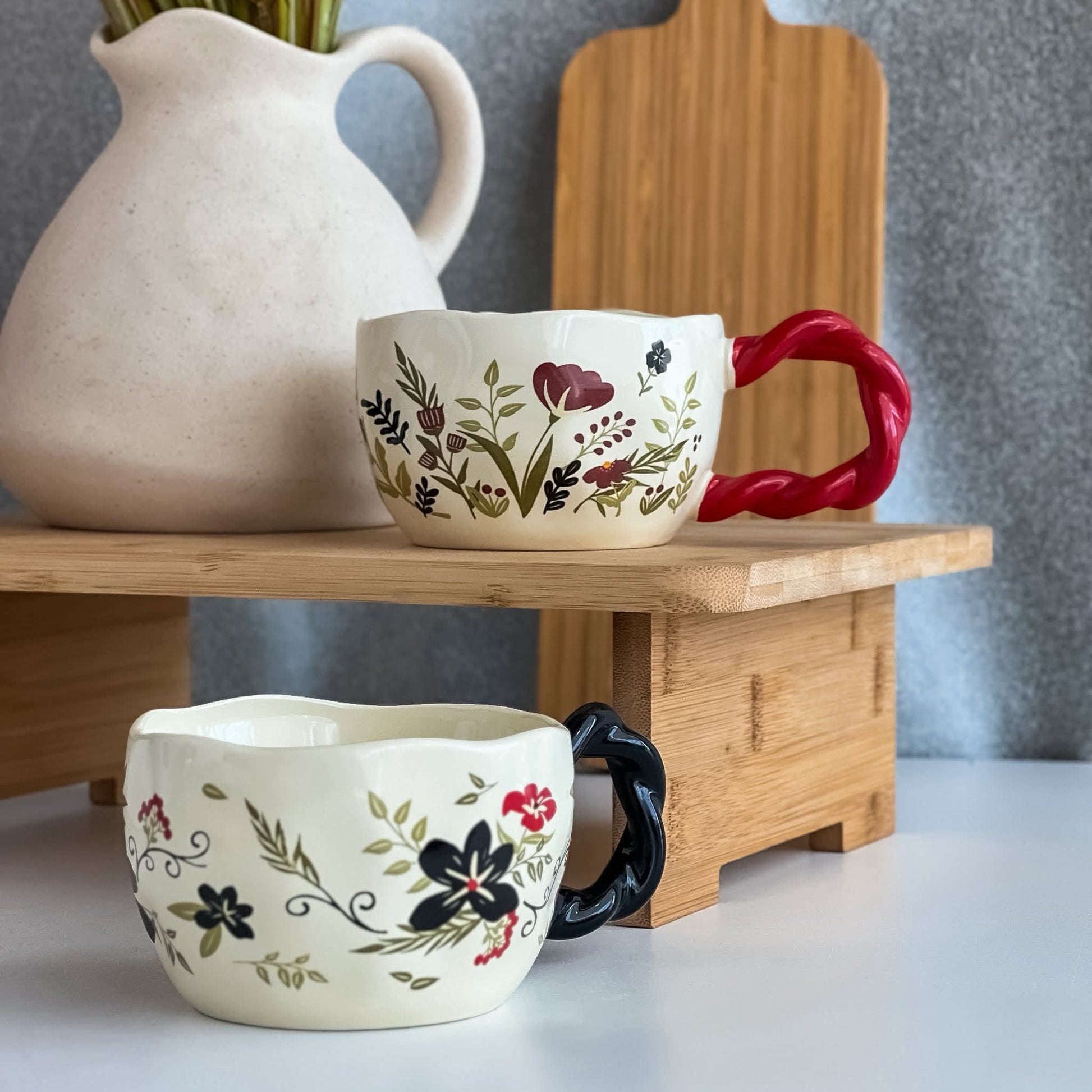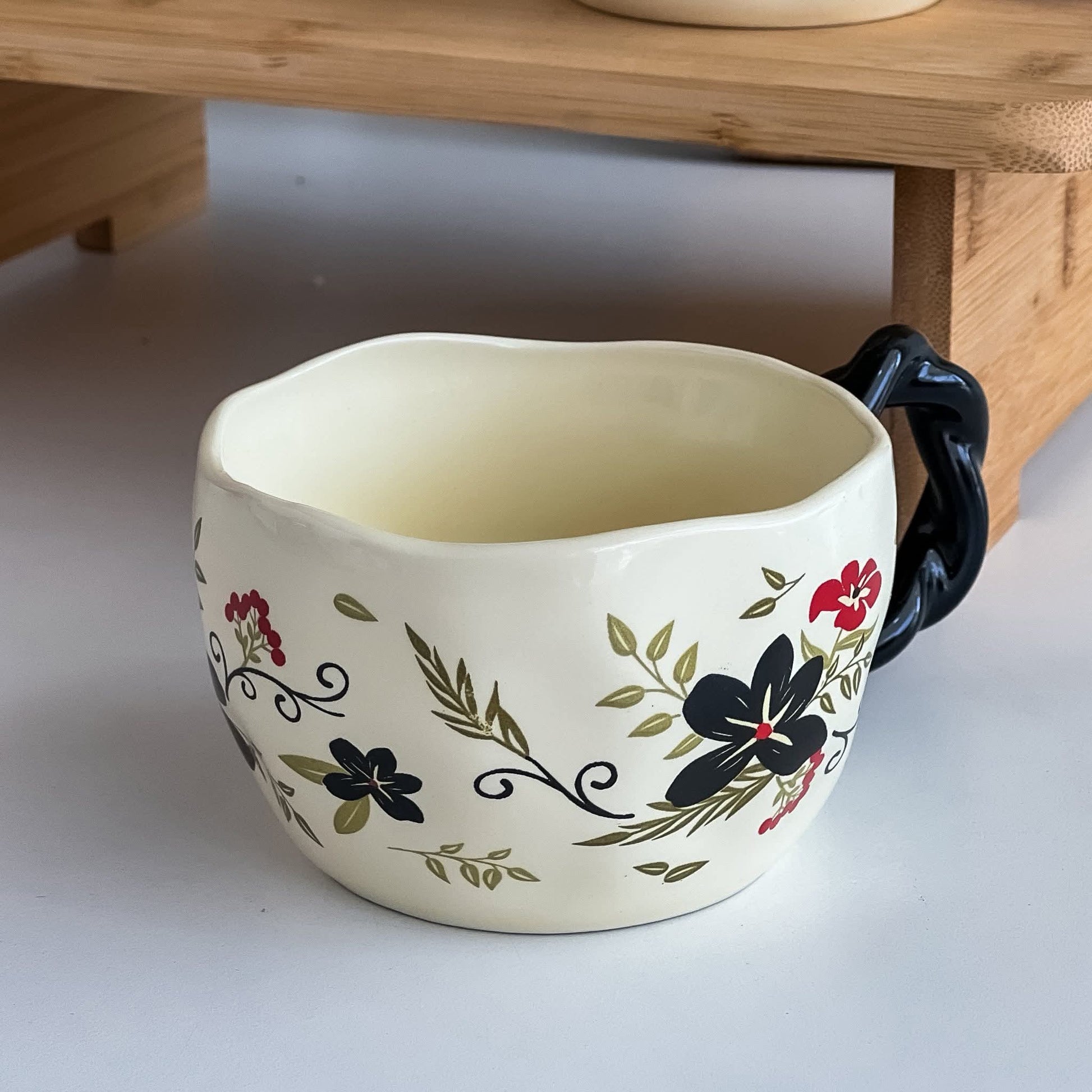 مق سيراميك أبيض بنقش الزهور